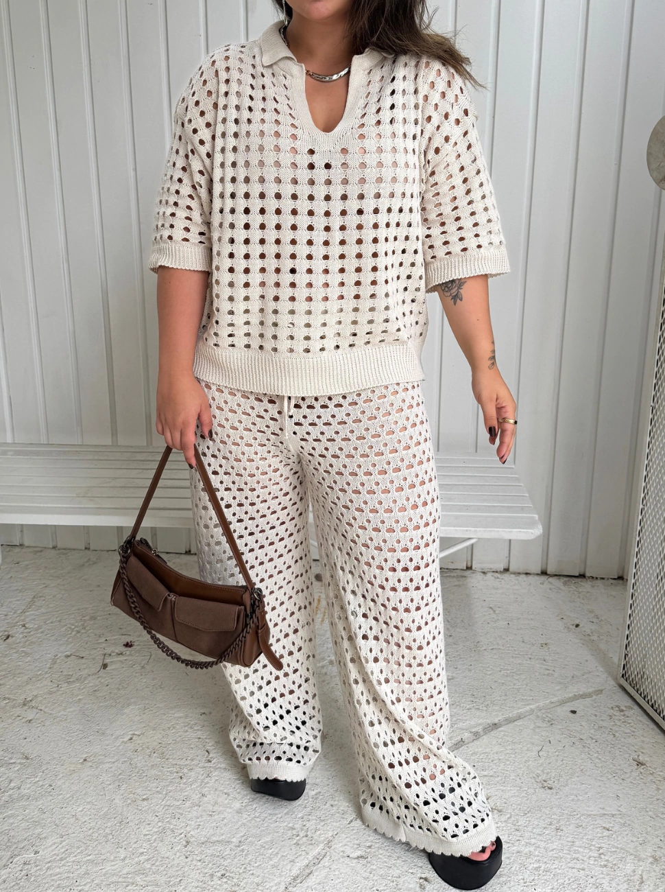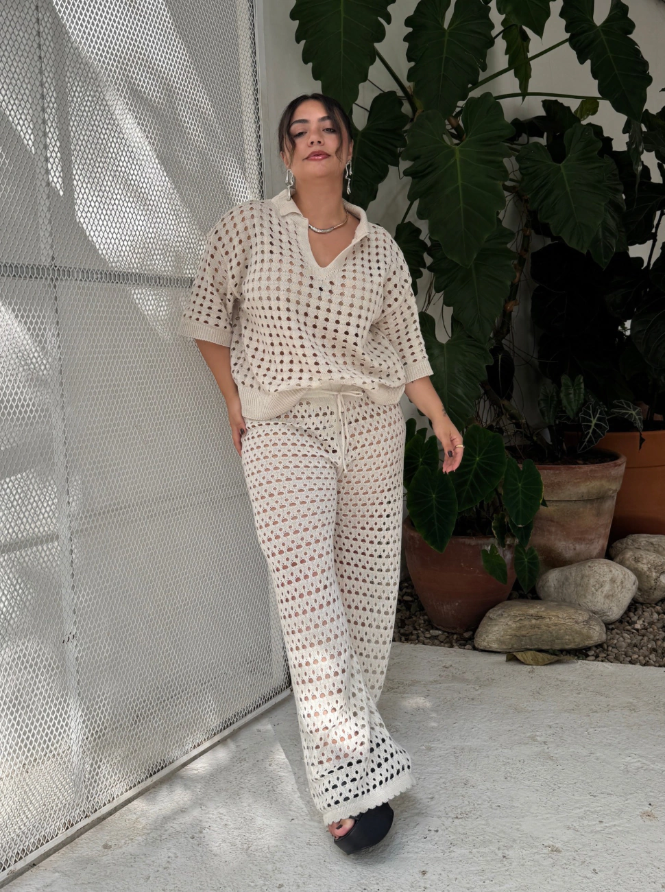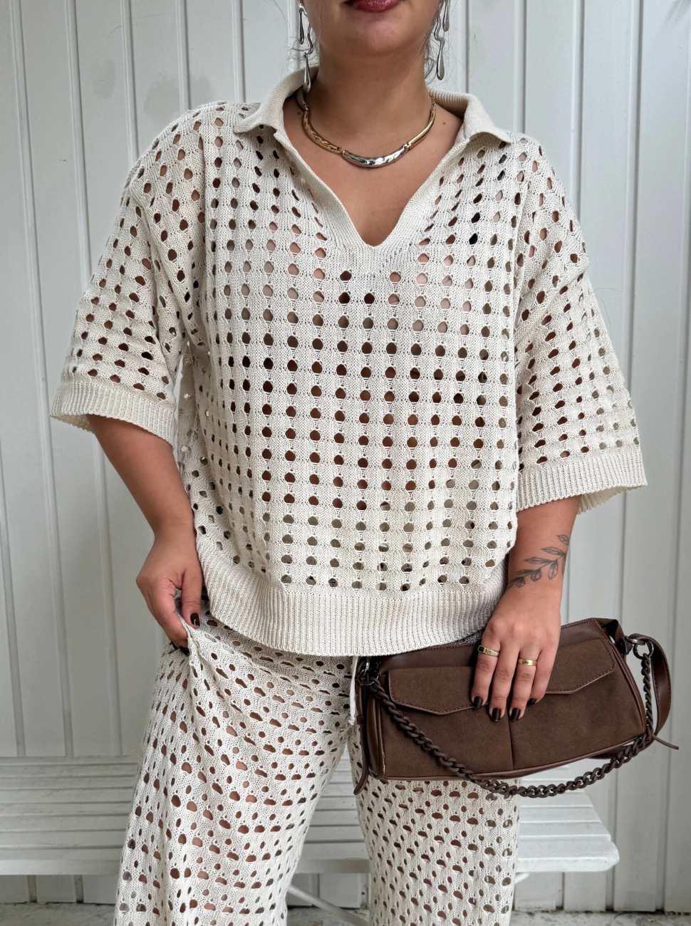 para os looks. O tom areia, o tecido em tricot com elastano e os detalhes fazem toda a diferença. Desenvolvido para ser versátil, esse conjunto combina tanto com pé na areia quanto com um rolê urbano - basta combinar com peças de alfaiataria e voialá, você tem um look fun e nada básico. É aquele conjunto leve para aproveitar os dias mais quentes sem complicação.
